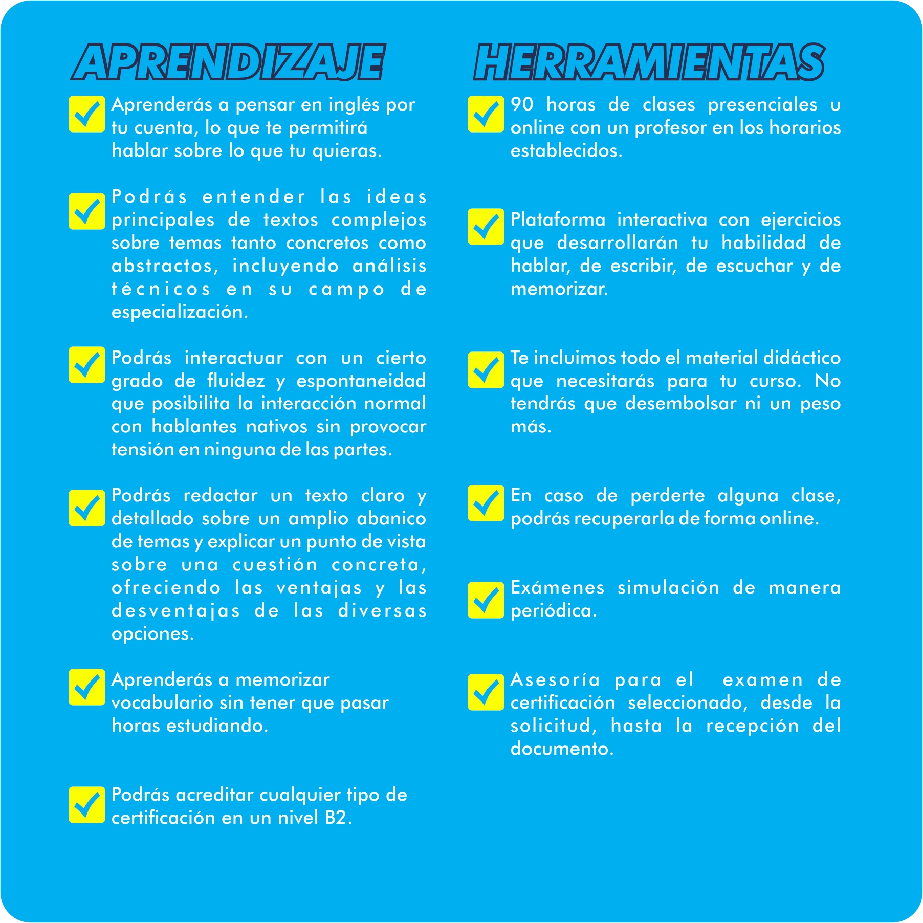 Objetivo: Los asistentes a este curso podrán acreditar un nivel B1 según el MERC en cualquier examen de certificación que elijan.